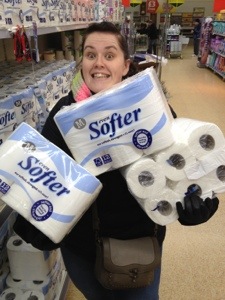 There were managers with radios running around shouting out and reporting shelves which were becoming depleted. There were fast shifts to get all the de-icer and the snow shovels to the front door area, just to make sure all the panicking people knew exactly where to get them. People were stockpiling sugar and bottles water like they were battening down the hatches for a Nuclear Winter. It was ridiculous. So naturally, we took the piss: