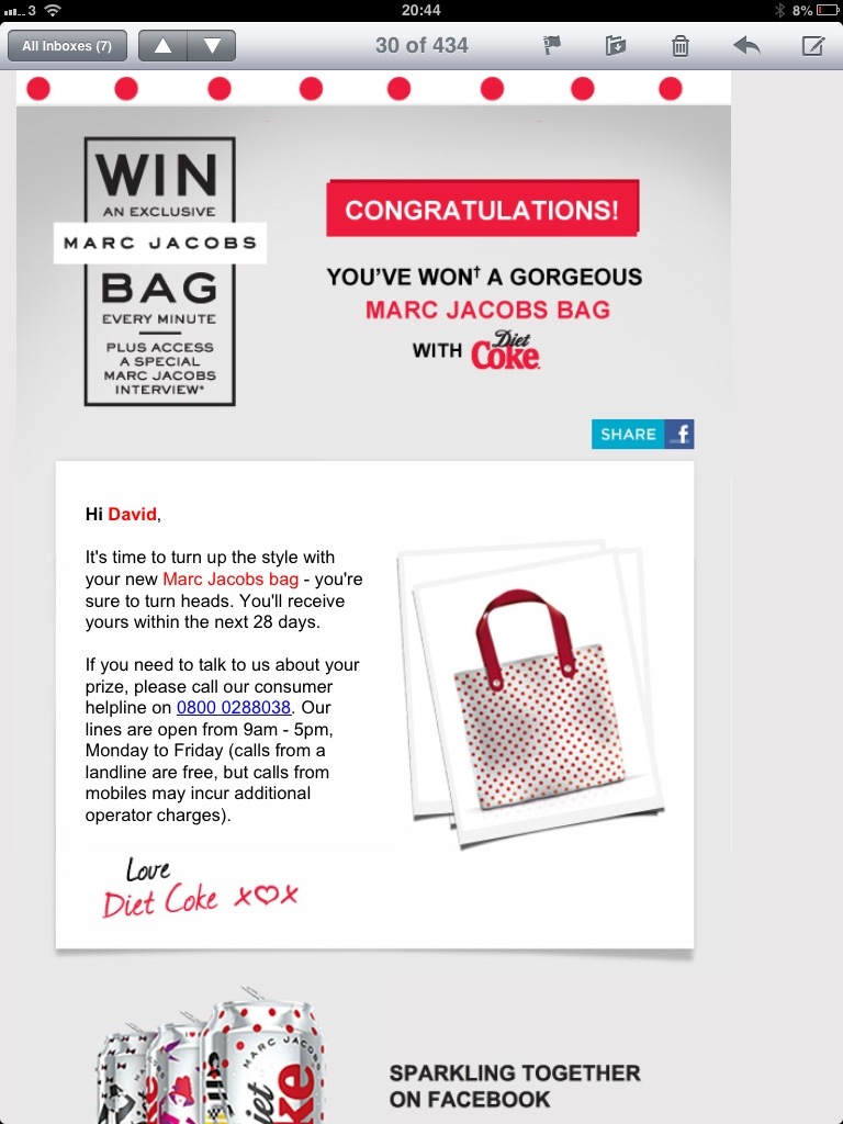 Had a nice little surprise tonight when checking emails to find out I had won a prize on the Coke Zone points competitions…for a split second I got rather giddy at the prospect of a complete home entertainment system or indeed a games console…then I found out I had won this :