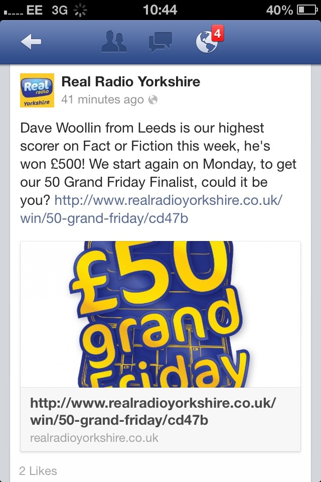And now the long drawn out fun begins. In three weeks time, the person with the highest score in Yorkshire will e invited to the Real Radio studios for the morning to play off against the four other station’s winners for that final £50k. There will be another three weekly competitions with the winner each week bagging £500…but I just need to hope and prey that no-one gets over 11 points…because if they don’t, then I am in the final! Eek!