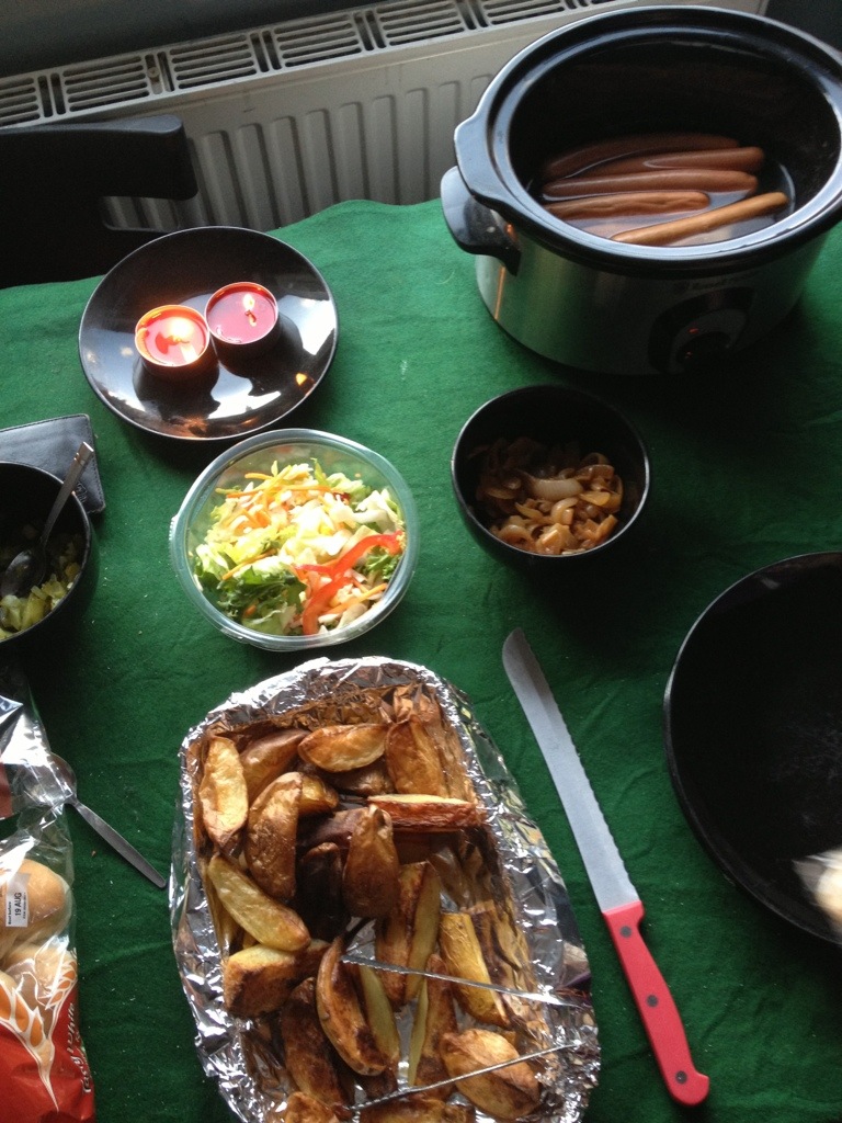 We picked Derek up from his grandma’s this afternoon then back home. Elle whipped up a cracking Hot Dog feast for the game. Amy & Tom came around to watch the match with us.