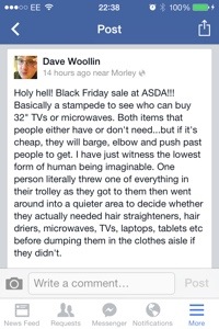 Black Friday arrived with a vengeance. As I was dropping Elle off at work early, I thought I would nip into ASDA so see what this Black Friday lark was all about.