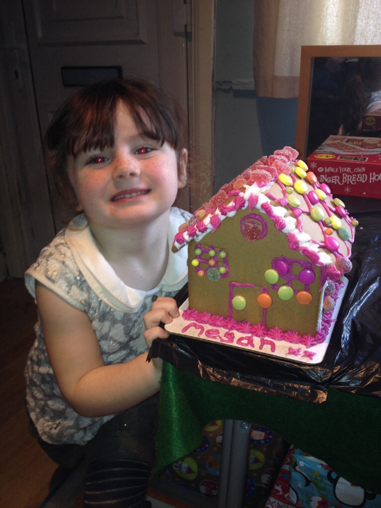Had our niece Megan over for the day. She decorated the Gingerbread House we had….I think she went a little bit crazy with the sweets…