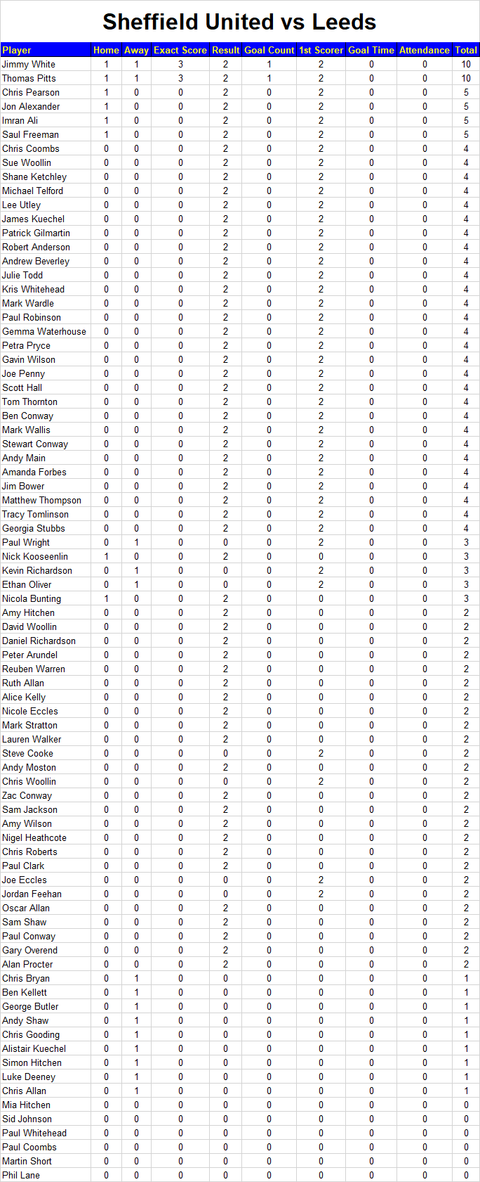 Leeds United Prediction League