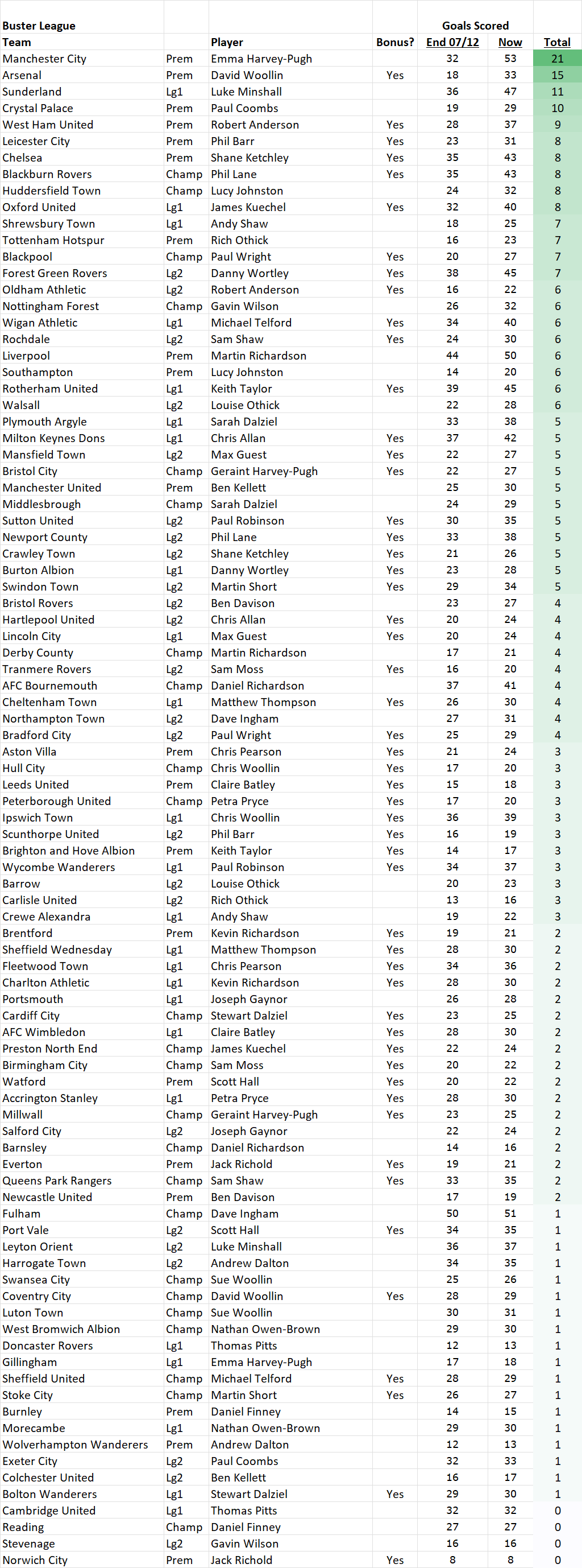 The below is assuming that 24 players are in the Buster but this could go up or down as I confirm players.