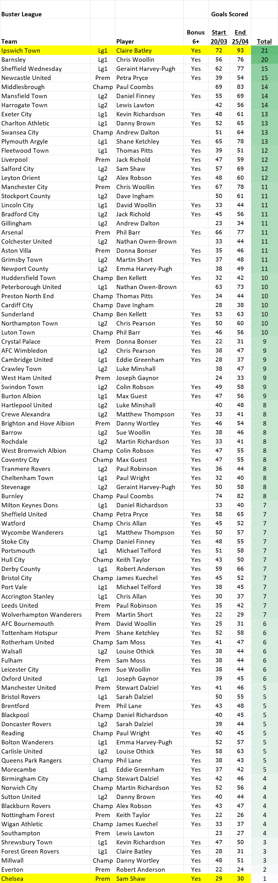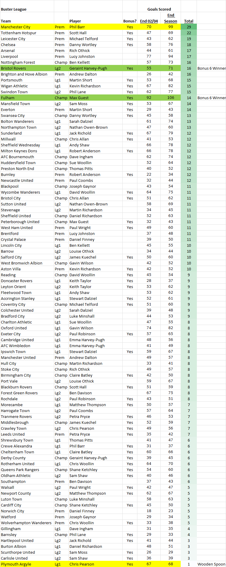 And with there not being enough games to go for a redraw, that’s the end of the 2022/23 season in the Buster. All the games through to Thursday are still counting in the Bonus 6, but with Petra Pryce already getting 6 this week, that game will end too.