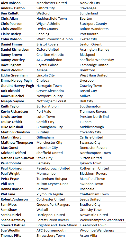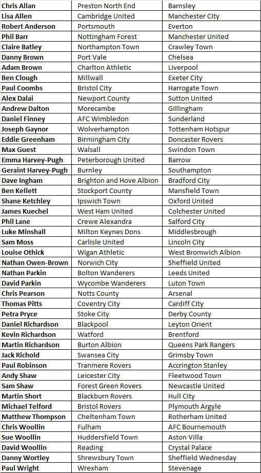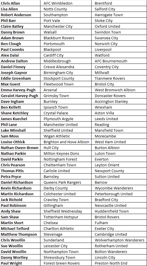 So…onto Game 3…and I’m going to change it purely because of the World Cup and everyone will only be allocated ONE team from League One and League Two. This ensures its a fair game for everyone and the timing of the win was actually quite good for it. This does mean that there’s going to be a couple of teams with no player connected to it, but it should be OK.