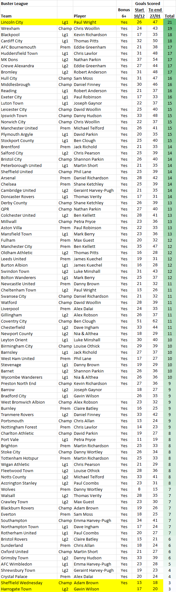Spurs landed on 21 goals exactly on 22/12 after losing 6-3 to Liverpool and Shane Ketchley won the 9-week prize. He took home 90% of the prize fund of £414 and bagged £372.60…but then he also had Bristol Rovers who only scored 3 goals….this was shared with Carlisle United and Adam Brown. They both take home £20.70 for finishing bottom.