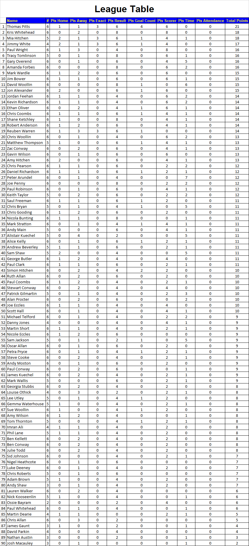 League Table