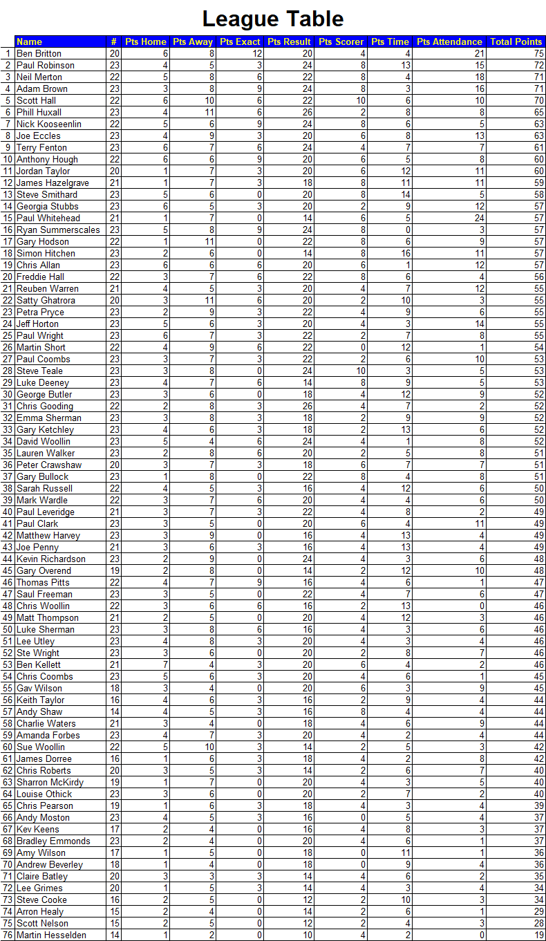 League Table