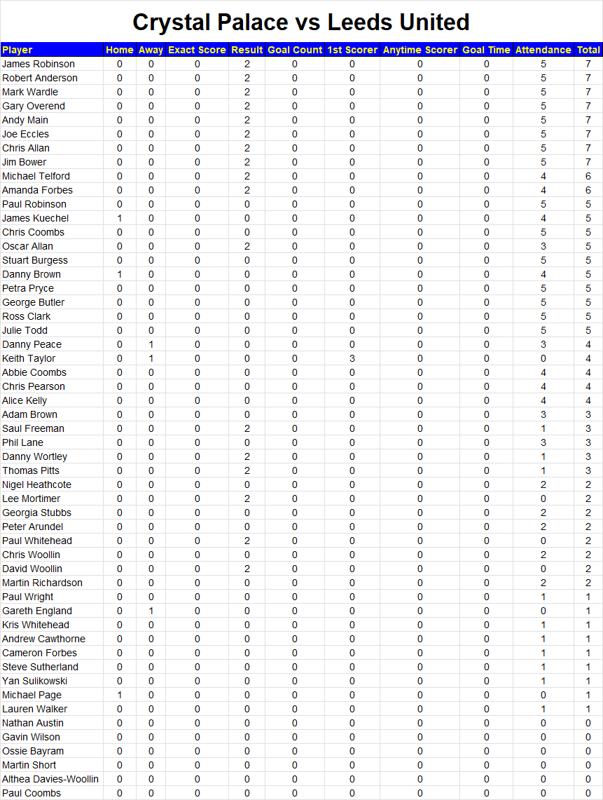 Crystal Palace 0-0 Leeds United, 25155 attendance