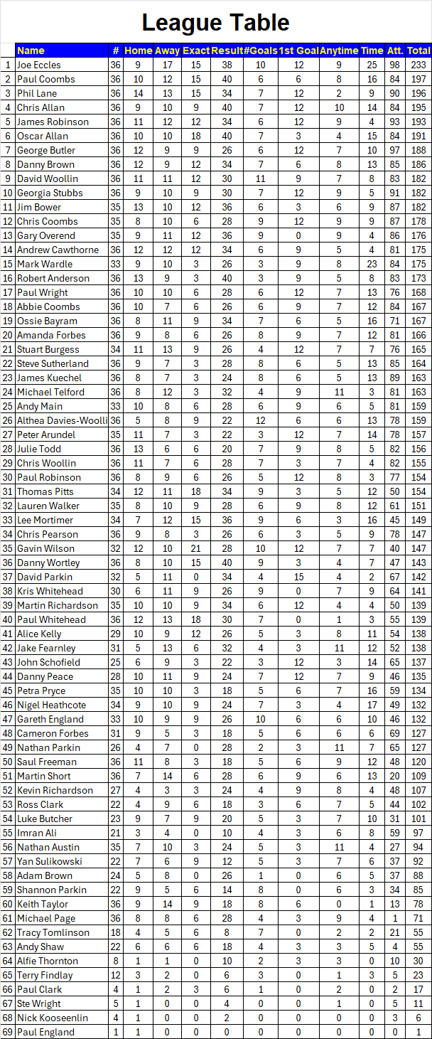 League Table